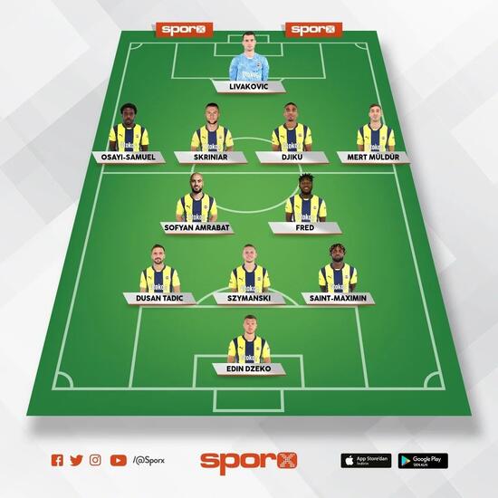 Fenerbahçe: Livakovic, Osayi, Skriniar, Djiku, Mert, Amrabat, Fred, Tadic, Szymanski, Maximin, Dzeko.